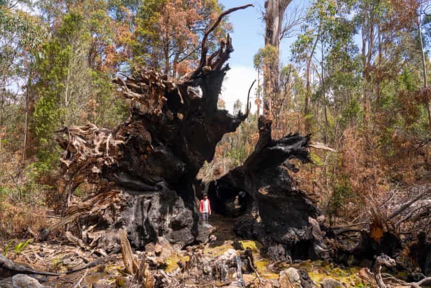 Like most other places, Tasmania’s average temperatures have risen 1C in the last century and the heatwaves are more frequent and the air drier, a potent fire mix. “The big trees just copped it. The tiny reserves for big trees that remain after 100 years of clearfell logging didn’t stand a chance,” says Pearce.